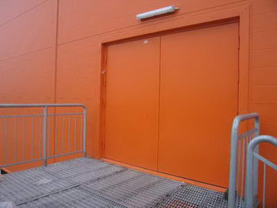 Обязательным условием для любых противопожарных ворот является открытие ворот от руки (выход для людей должен быть обеспачен). Предусмотрено изготовление дополнительной встроенной калитки, которая не влияет на противопожарные свойства ворот. Распашные ворота могут открываться как наружу, так и внутрь помещения.